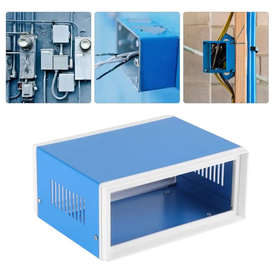 Blue Metal Enclosure Project Case DIY Junction Box Accessories 170*130*80mm