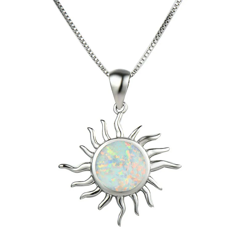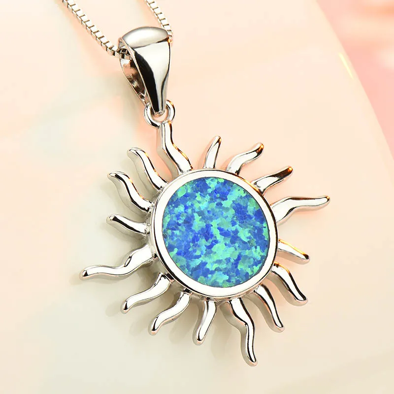 Cellacity White Blue Silver 925 Jewelry Round Opal Sun Pendant Necklace for Women Gemstones Simple