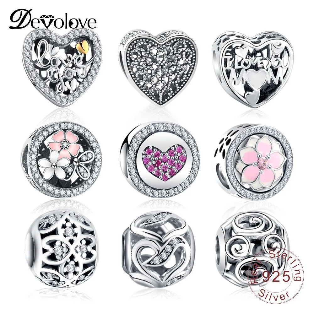 HIGH QUALITY Devolove 925 Sterling Vintage Sparkling Charms Beads Fit Original Pandora Bracelet Silver Jewelry D