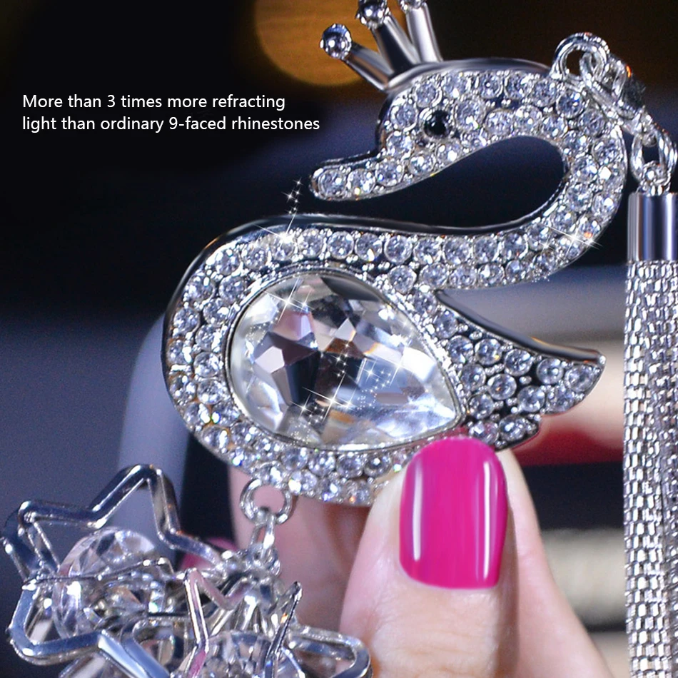 Fashion Car Pendant Diamond Crystal Fur Ball Swan Element Decor Automobile Rearview Mirror Car Hang