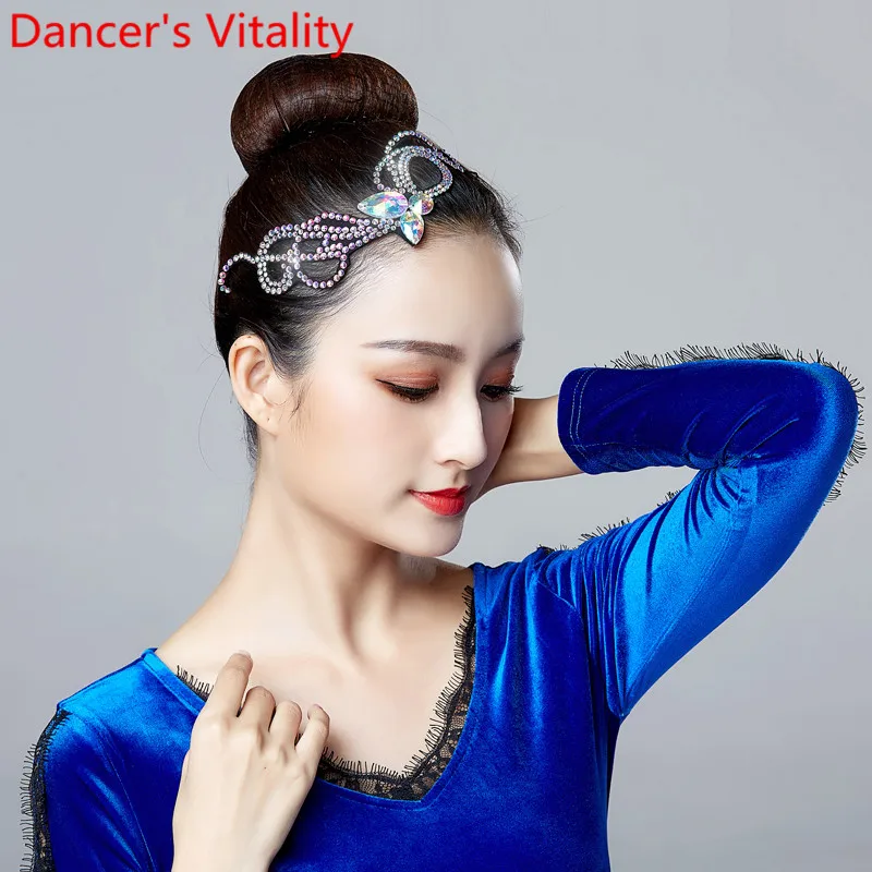 Latin Dance Headdress Stage Wear Competition Professional Dancer Adult Children Performance Rhinest