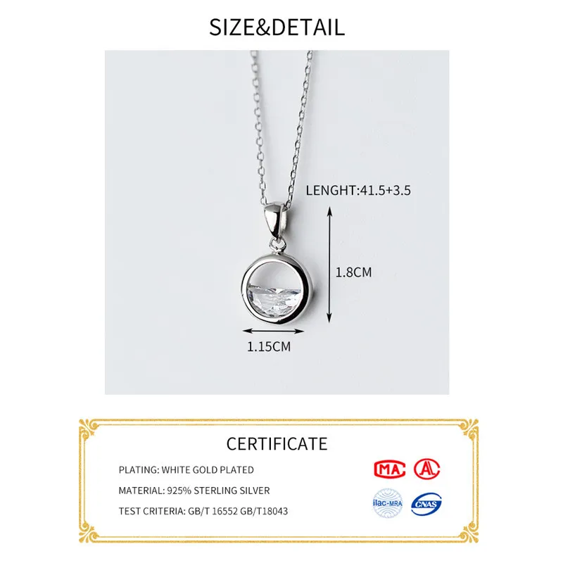 BEST INZATT Real 925 Sterling Silver Crystal Round Minimalist Pendant Necklaces Minimalist Fine Jewelry
