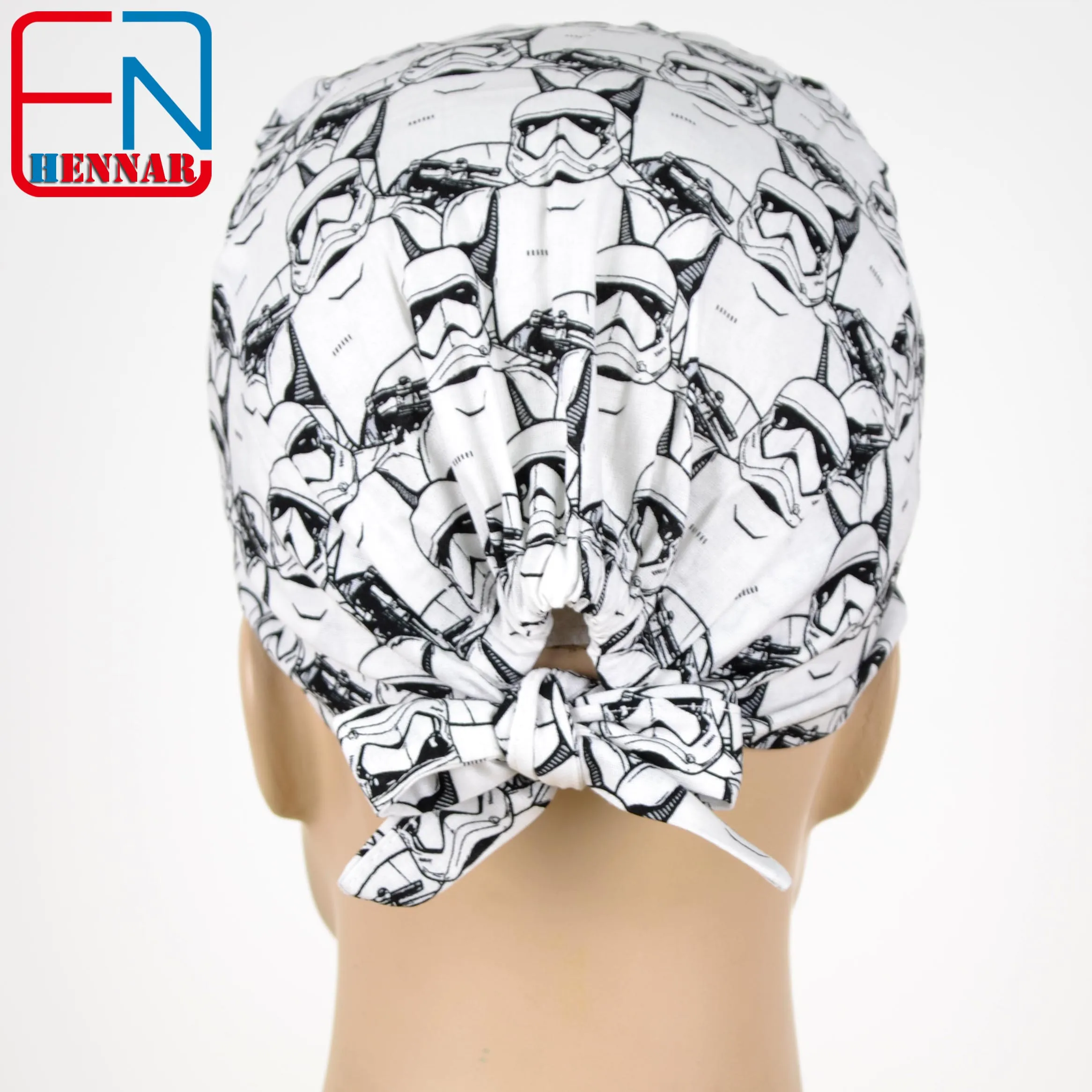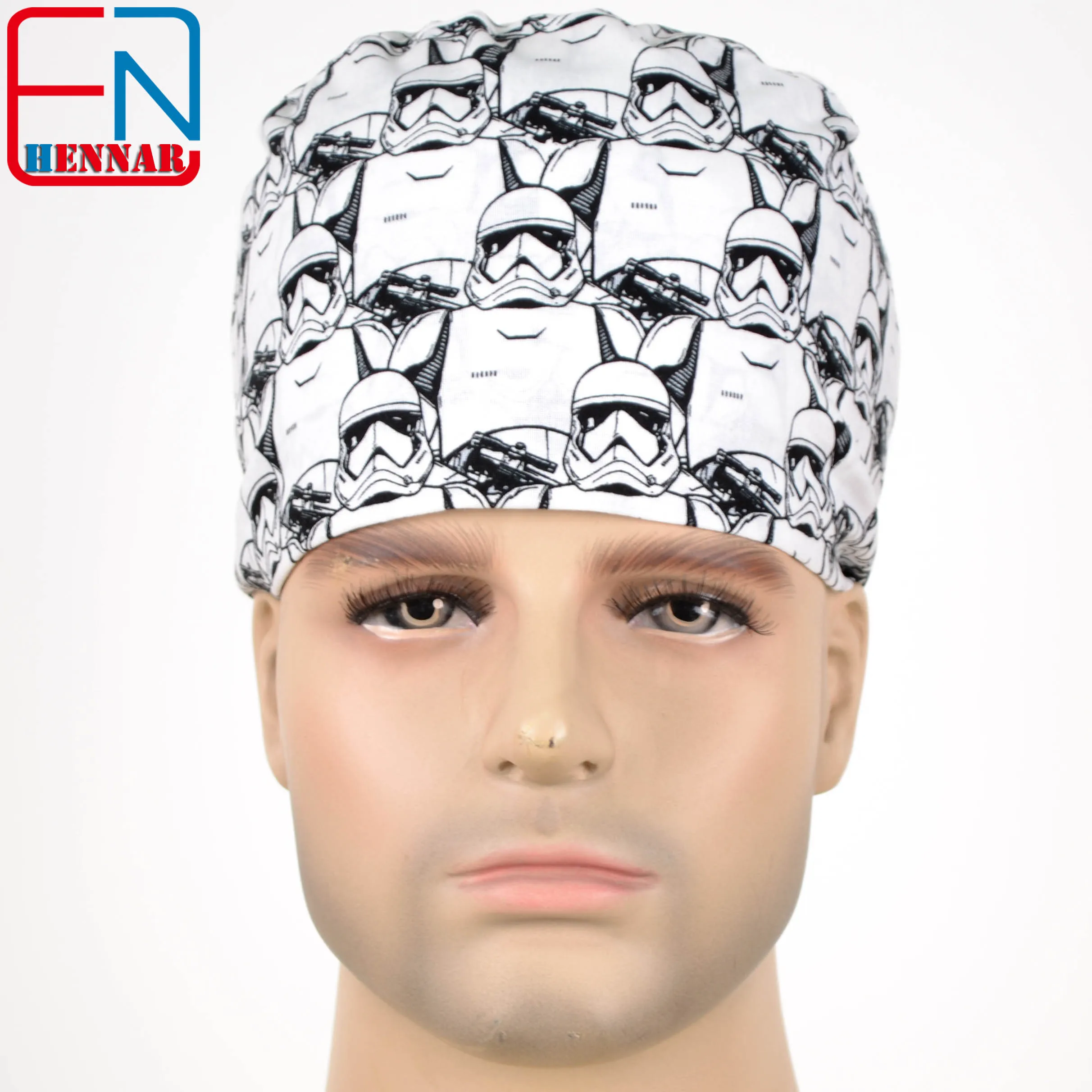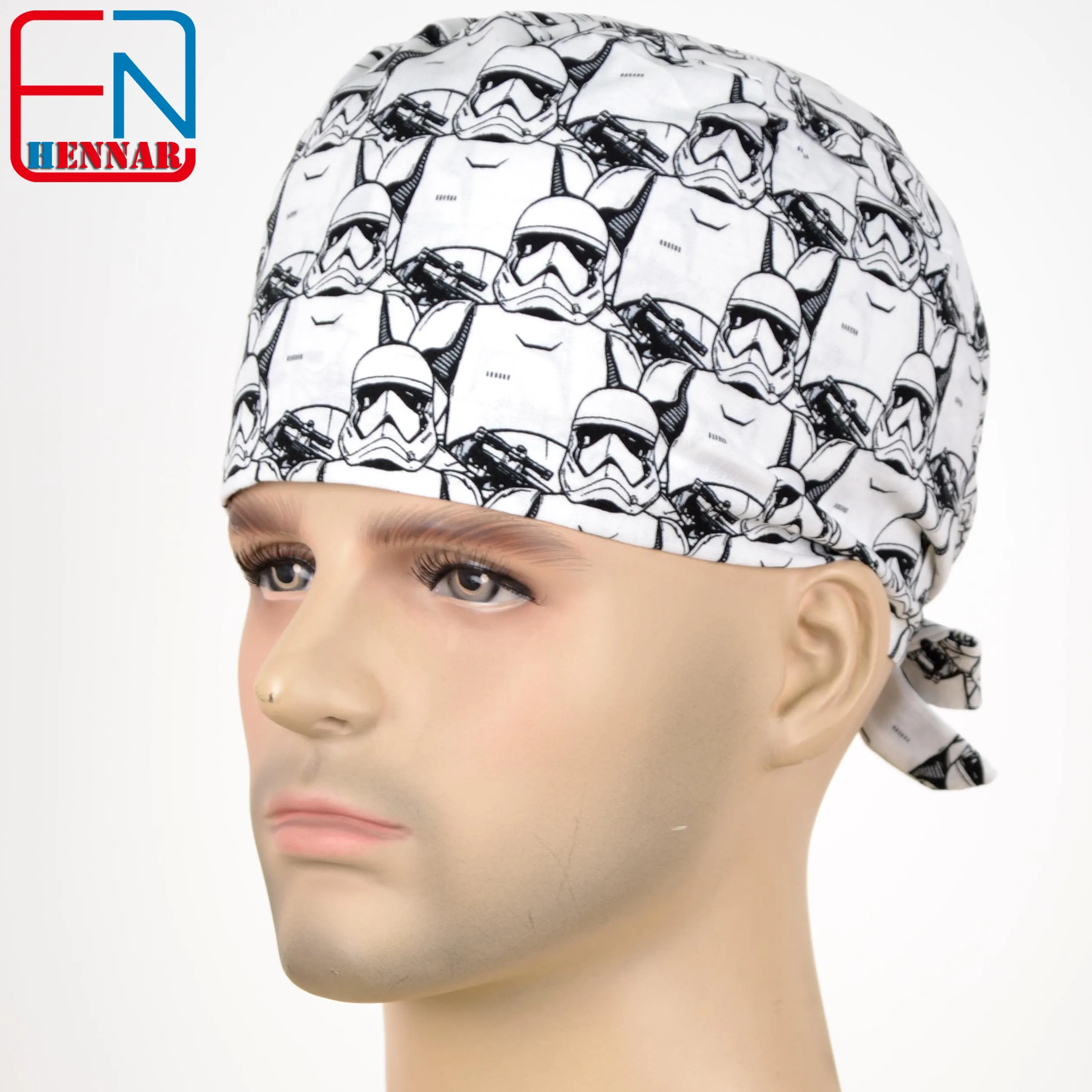 HOT Sale Hennar Men's Scrub Caps Masks 100% Cotton Adjustable Elastic Bands Surgical Scrub Caps Medical Hosp